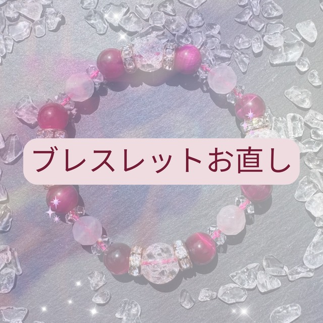 ※以前ブレスレットをご購入された方専用 お直しのみをご希望の方 送料無料でお届けします 以前こちらでブレスレットをご購入頂いた方専用になります。 サイズを変更したい、切れてしまった、という場合はこちらをご購入下さい。 こちらへの返送の代金はお客様の負担となりますのでご了承下さい。 お祓い(パワーチャージ)も同時にご希望の方は、ブレスレットのお祓い(パワーチャージ)をご購入下さい。お直し代は無料になります。 備考欄にご希望の内容を必ずご記入下さい。 (例:サイズを1cmほど大きくしたい) ※当店以外で購入された場合、お祓い(エネルギーチャージ)・お直しはお受けできませんので、ご了承ください。 以前こちらでブレスレットをご購入頂いた方専用になります。