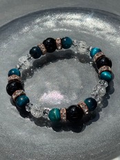 オニキス・ブルーグリーンタイガーアイ・クラッククオーツの天然石を組み合わせた、出雲神柱神社謹製の御守ブレスレット。